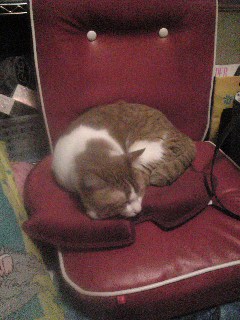 以前はタンスと壁の間がお気に入りだったのに、最近は↑のように座椅子の上がお気に入りのよう。