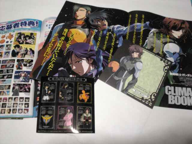 で、真ん中にあるのが携帯カレンダーシール。マイスター全員とハロ+CBマークの計6枚。勿体無くって(というか貼るところがなくて)保存決定(笑)