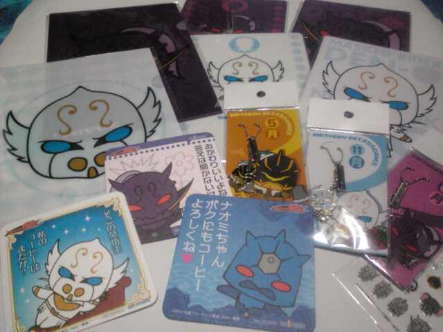 ミニノートやミニ下敷き、ミニクリアファイルとバースデーキーホルダー。後は携帯シールかな?