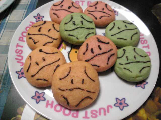 単に焼いたクッキーにチョコペンで顔を書いただけですが(笑)