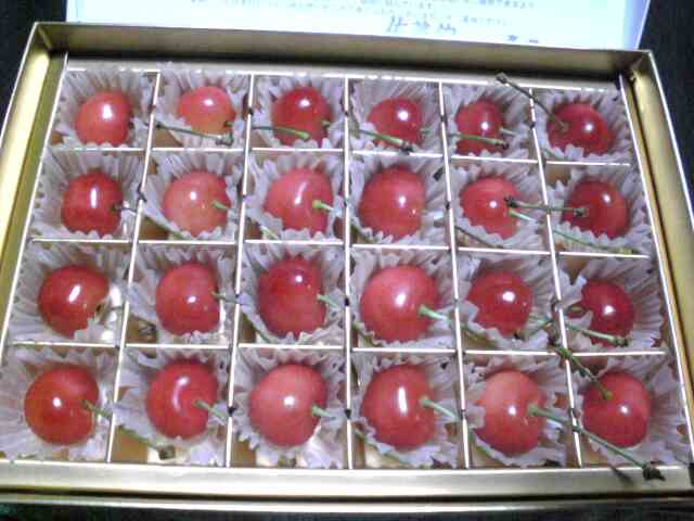 ・・・・と空けてみると・・・びっくり!一個ずつ包装(ていうのか^^;)されたさくらんぼ!