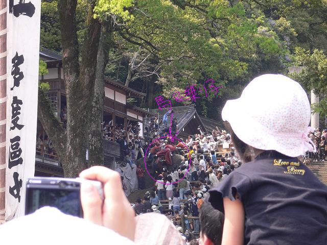 15~20歳までの青年が馬に乗って、急激な坂を一気に駆け上がり、農作物の豊作を占うお祭なんです。